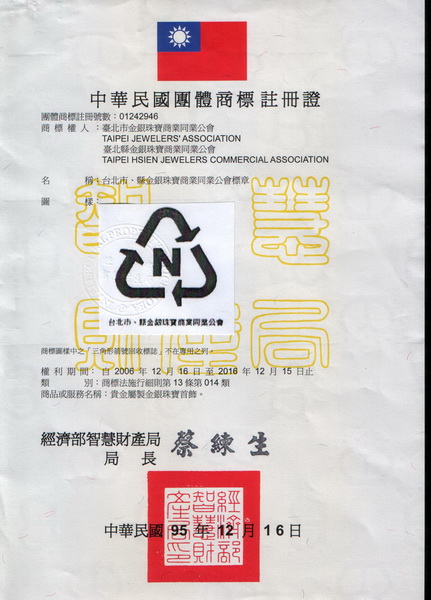 本會與台北市公會共同推動之貴金飾品誠實標示之標誌已於95年12月16日獲經濟部智慧財產局01242946號公布商標註冊證;請會員多與簽約廠商合作採購,以共同推動貴金飾品成色實誠標誌.